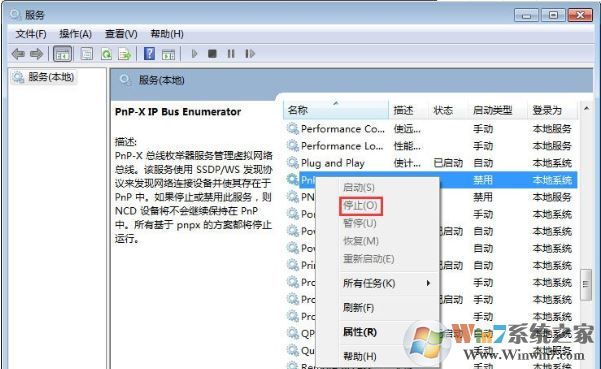 2、在窗內(nèi)找到PnkBstrA和PnkBstrB,右鍵單擊,在彈出菜單中選擇“停止”。