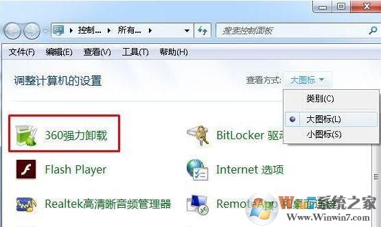 如上圖,在設置為大圖標或小圖標時就會出現(xiàn)。360強力卸載。