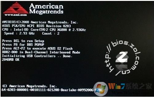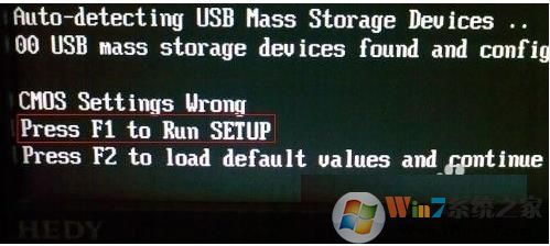 如上顯示按F1進(jìn)入BIOS設(shè)置,按F2讀取默認(rèn)設(shè)置繼續(xù)啟動電腦。