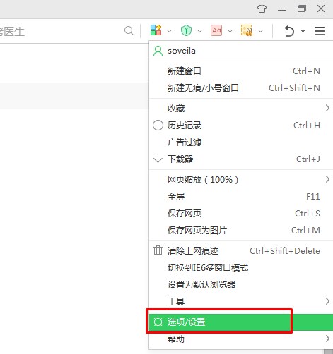 1、找到瀏覽器的設(shè)置,一般的瀏覽器都在這邊設(shè)置