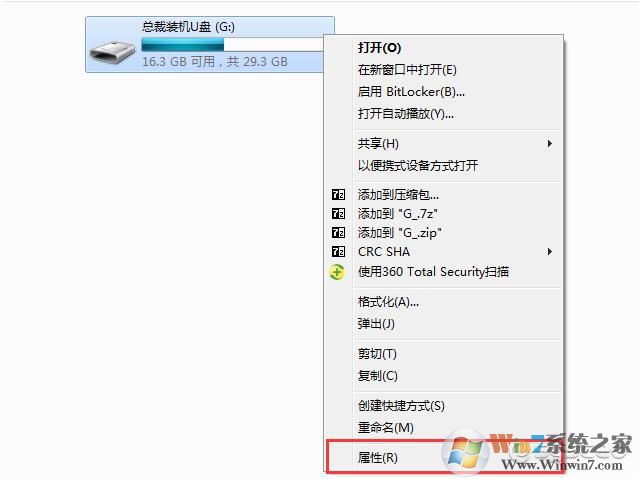 1、首先U盤(pán)準(zhǔn)備好插入到電腦中,此時(shí)U盤(pán)中的東西已經(jīng)添加完成了, 右鍵屬性 如下圖:
