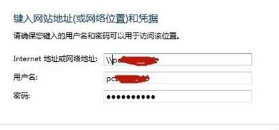 5、然后在新出現(xiàn)的頁面中輸入對方的地址,用戶名,密碼。這里地址也是輸入”\\對方計算機名“、用戶名是對方的計算機名、密碼是對方設(shè)置的密碼。然后確定退出。