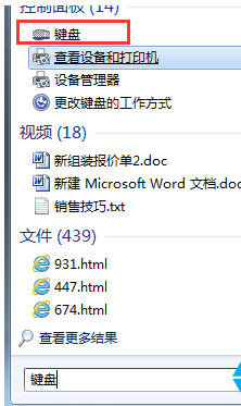 1、單擊開始菜單,然后在開始菜單搜索框中輸入“鍵盤”,并在搜索結(jié)果中點擊“鍵盤”,或者通過控制面板來打開鍵盤設(shè)置,;