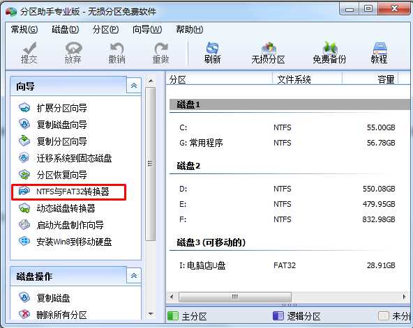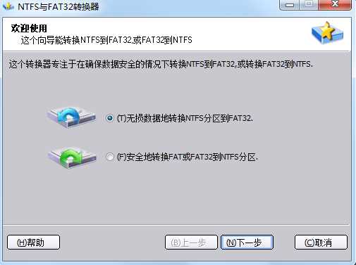 3、打開后選擇 無損數(shù)據(jù)地轉換NTFS分區(qū)到FAT32