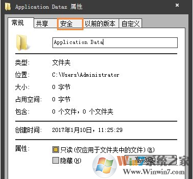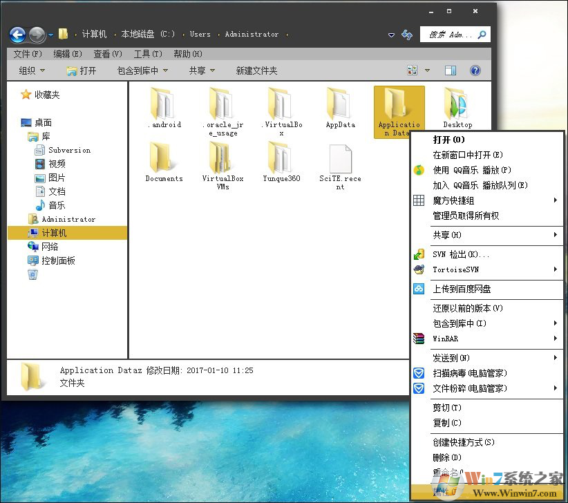 1、此時(shí)在文件夾中可以看到Application Data右鍵點(diǎn)擊選擇【屬性】選項(xiàng);