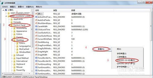 第二步:接著我們定位到:HKEY_Current_USERControl PanelDesktop。