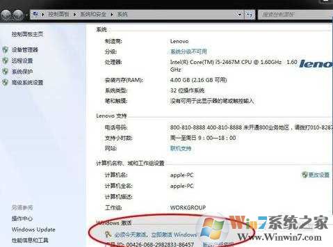方法二:激活密鑰激活Win7