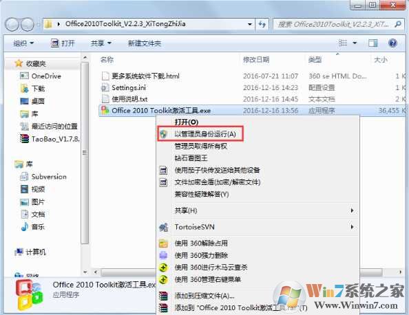 1、下載解壓縮后運(yùn)行“Office 2010 Toolkit”,如果不能運(yùn)行,請以管理員身份運(yùn)行。