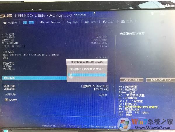 3、最后在高級模式中,按f5并點擊“是”確定載入最佳默認值,如圖所示: