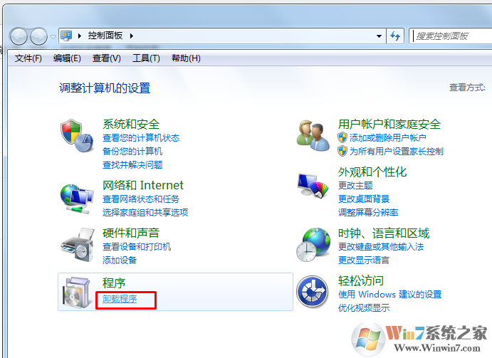 1、打開控制面板后選擇卸載程序