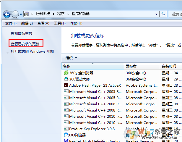 2、點(diǎn)擊查看已安裝的更新