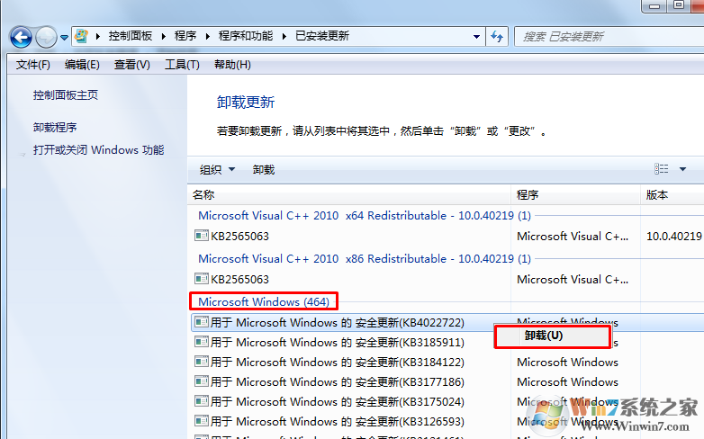 3、找到要卸載的補(bǔ)丁,然后右鍵卸載