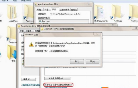 4、然后點(diǎn)擊“將所有者更改為”下方的的“Achai”然后勾選下方的“替換自容器和對象的所有者”,然后點(diǎn)擊應(yīng)用;