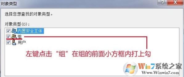 6、我們?cè)趯?duì)象類型窗口的對(duì)象類型(O)欄內(nèi),左鍵點(diǎn)擊“組”,在組前面的小方框打上勾,再點(diǎn)擊:確定。