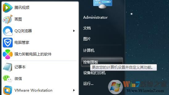 1、點(diǎn)擊“開(kāi)始”按鈕打開(kāi)“開(kāi)始”菜單,然后在開(kāi)始菜單中打開(kāi)“控制面板”;
