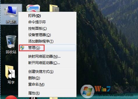 1、進(jìn)入桌面右鍵點擊計算機(jī)圖標(biāo)打開菜單,選擇“管理”;