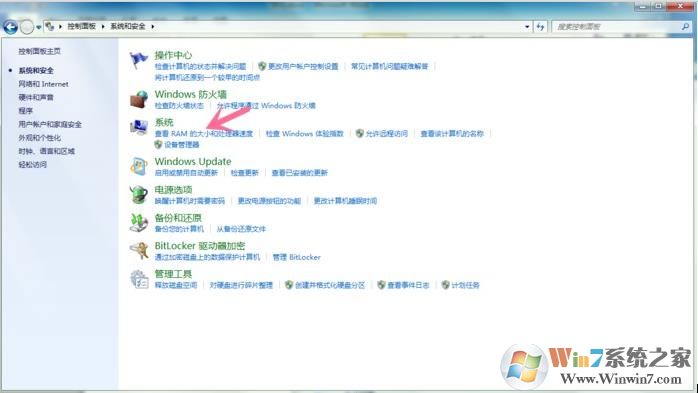 打開控制面板系統(tǒng)和安全選項(xiàng)