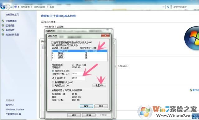 6、這里的顯示,雖說是8GB內(nèi)存的電腦,實(shí)際的使用只有1-2GB。推薦修改的內(nèi)存大小為12GB左右。我們在自定義大小那里,初始寫入12GB,也就是12000MB左右,最大值可更改為16GB,再點(diǎn)擊設(shè)置。