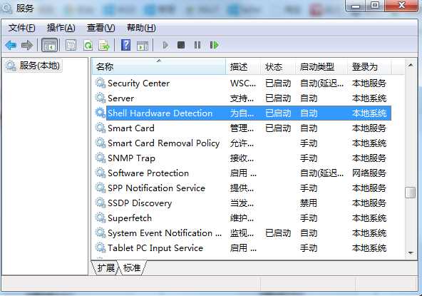 2、在本地服務(wù)中找到“Shell Hardware Detection”服務(wù),然后雙擊打開;