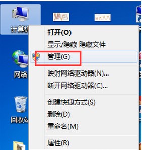 7、會(huì)到桌面上在“計(jì)算機(jī)”上單擊右鍵,選擇“管理”;