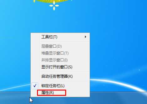 1、右鍵點(diǎn)擊任務(wù)欄,然后選擇屬性;