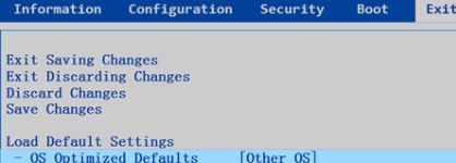 1、進(jìn)入BIOS 界面,選擇“Exit”→把 “OS Optimal Default”設(shè)置“disabled” ,(OS Optimal default 開(kāi)關(guān)可以理解為UEFI和傳統(tǒng)BIOS的切換);