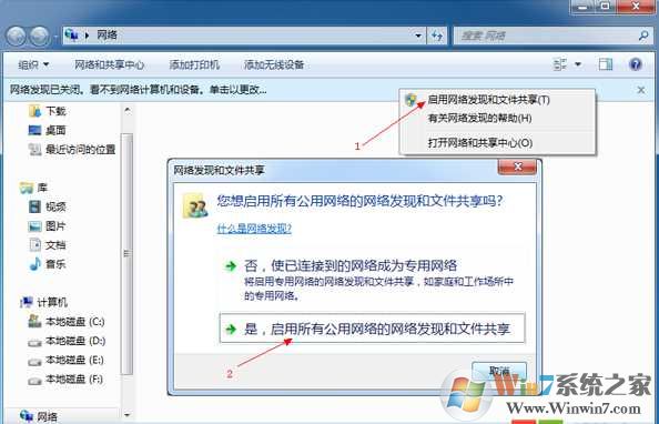 如果打開網(wǎng)絡(luò)出現(xiàn)網(wǎng)發(fā)現(xiàn)已關(guān)閉,看不到網(wǎng)絡(luò)計算機和設(shè)備,單擊以更改的話,點擊啟用網(wǎng)絡(luò)發(fā)現(xiàn)和文件夾共享即可。