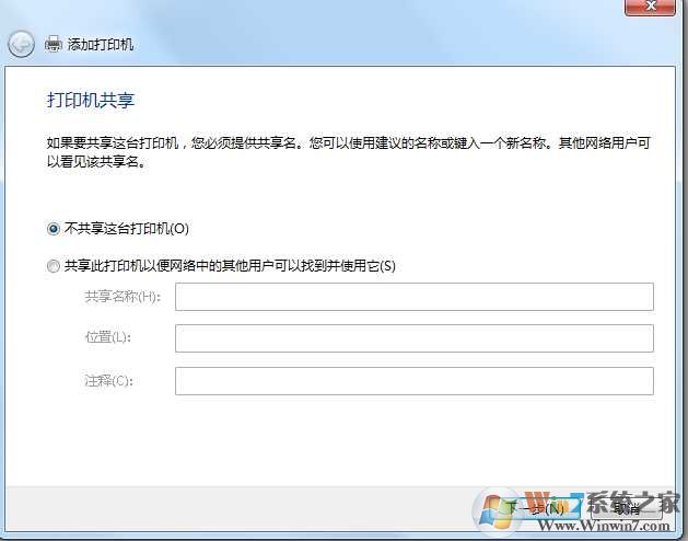 6、接下來會詢問你是否要共享該打印機,這個就隨便各位了,不是局域網(wǎng)下就不用共享了。
