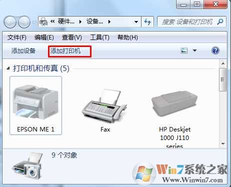 2、然后點擊添加本地打印機,Win7添加網(wǎng)絡打印機方法