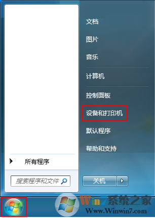 3、在[開(kāi)始]圖標(biāo)中找到[設(shè)備和打印機(jī)]。