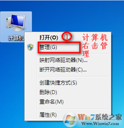 第一步、桌面上,右鍵“計算機(jī)”選擇“管理”。