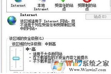 2、在internet選擇中,在上面切換到“安全”選項卡下,點擊默認級別,如圖所示: