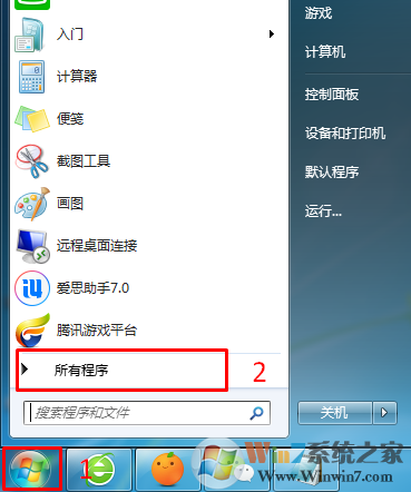 1、打開開始菜單,選擇所有程序