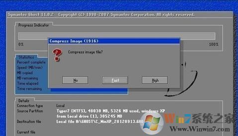 7、在彈出的“compressimagefile?”(是否壓縮備份),同時,有三個選項:No不壓縮,F(xiàn)ast(快速,壓縮率低,體積相對較大,速度快),High(高壓縮,壓縮率高,體積相對較小,速度慢),一般選擇FAST,如圖: