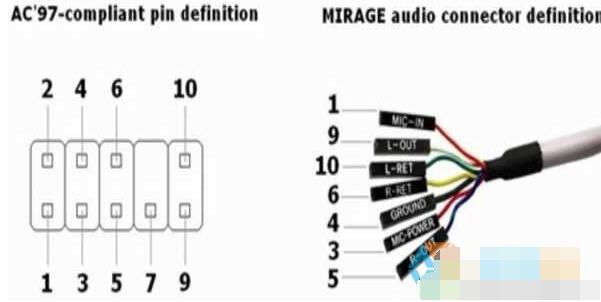 在連接前置音頻的時(shí)候,只需要按照上面的定義,連接好相應(yīng)的線就可以了。實(shí)際上,第5Pin和第6Pin、第9Pin和第10Pin在部分機(jī)箱上是由一根線接出來的,也可以達(dá)到同樣的效果。