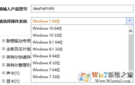 2、接著按自己的筆記本型號選擇對應(yīng)的筆記本,選擇完成后選擇操作系統(tǒng)版及系統(tǒng)位數(shù),如圖: