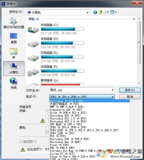 圖像文件:例如使用PS打開PNG文件然后另存為JPG文件。