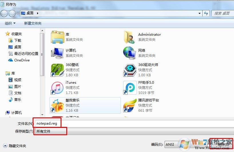 然后將下面的藍(lán)色代碼復(fù)制進(jìn)去,然后保存為“notepad.reg”文件,將文件格式選擇為所有。然后雙擊導(dǎo)入到注冊表,這樣鼠標(biāo)右鍵當(dāng)中的記事本就出來了。
