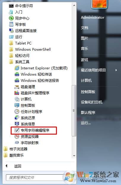 1、從開始菜單——所有程序——附件——系統(tǒng)工具,然后打開“專用字符編輯程序”;