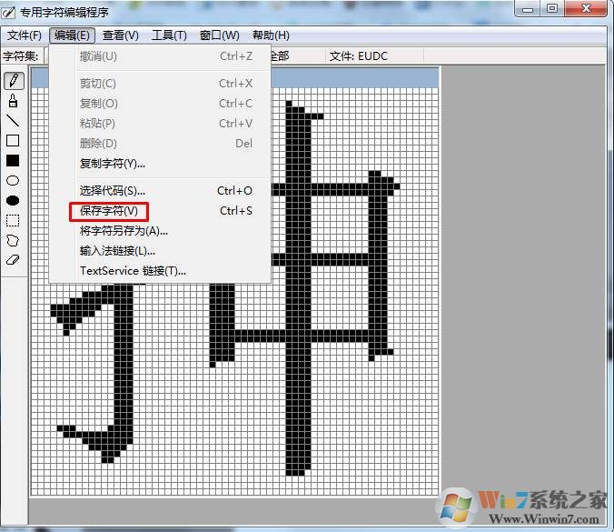 9、選擇菜單欄的編輯-保存字符,到此我們合成的這個 提手旁+神的半個的字就完成了。