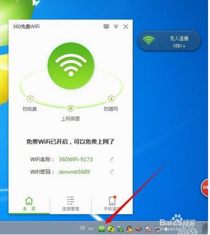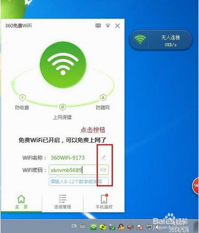 3、點擊桌面右下角任務欄的免費wifi圖標,打開主界面進行設(shè)置,可以編輯無線wifi的名稱及密碼