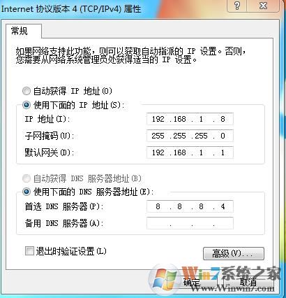 子網(wǎng)掩碼設(shè)置為255.255.255.0 默認(rèn)網(wǎng)關(guān)為路由器IP地址 DNS服務(wù)器地址 使用本地或公用地址。
