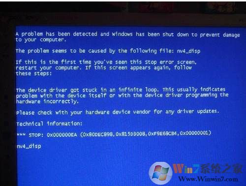 根據(jù)實際藍(lán)屏問題分析,大多數(shù)的藍(lán)屏0x000000ea問題都是由于顯卡驅(qū)動和系統(tǒng)不兼容導(dǎo)致的。通常在藍(lán)屏界面會顯示錯誤文件,如NV4_disp 。而藍(lán)屏都是在驅(qū)動安裝后出現(xiàn)。
