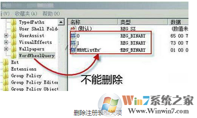 還是需要在注冊表中來進(jìn)行操作,在開始菜單的搜索欄中輸入“regedit”進(jìn)入注冊表,依次找到如下鍵值:HKEY_CURRENT_USERSoftwareMicrosoftWindowsCurrentVersionExplorerWordWheelQuery,刪除右邊子項中除了名為默認(rèn)的項即可。如果怕刪錯可以先選擇上方工具欄的“導(dǎo)出”功能來備份注冊表,有問題時再恢復(fù)即可。