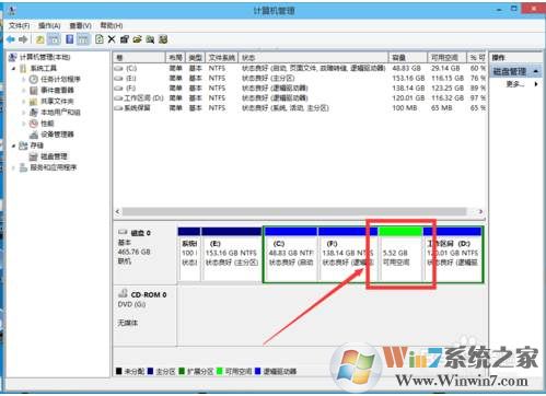 6、確定之后,會出現(xiàn)一個綠色的可用空間;