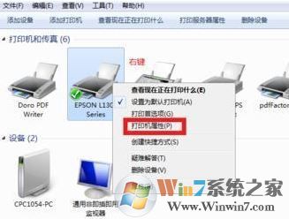 5、紙張大小添加完只完成了成功打印文件的第一步,接下來還需要到打印機中去做紙張設置。在要打印的打印機右鍵,選擇“打印機屬性”。