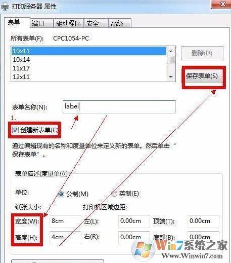4、單擊創(chuàng)建 “新表單”,為新表單命名,輸入直尺量測好的寬度、高度,然后點擊 “保存表單”即可,見下圖。