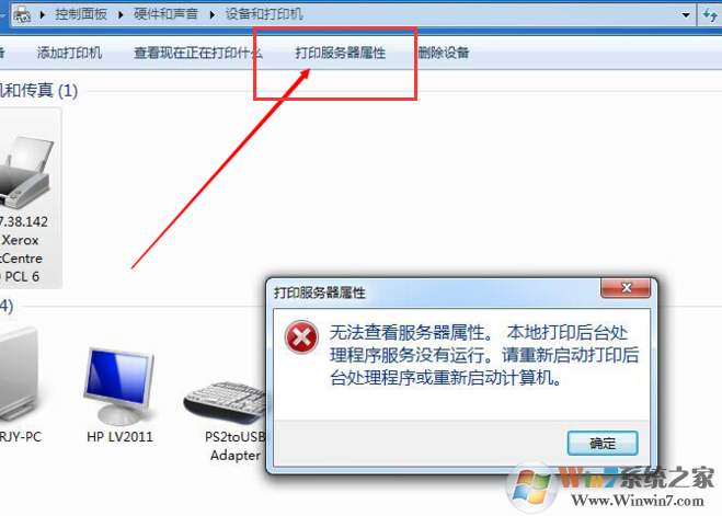 3、點(diǎn)擊【打印服務(wù)器屬性】,彈出對(duì)話框