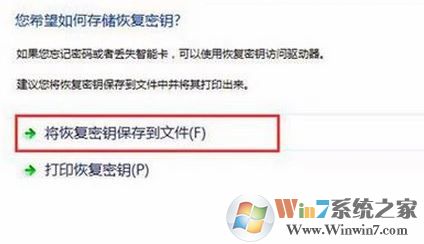 步驟三、在“您希望如何存儲恢復(fù)密鑰?”界面點擊 將恢復(fù)密鑰保存到文件(F) ,如圖: