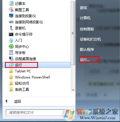 1.點(diǎn)擊開始菜單再附件里面找到運(yùn)行,點(diǎn)擊打開它。